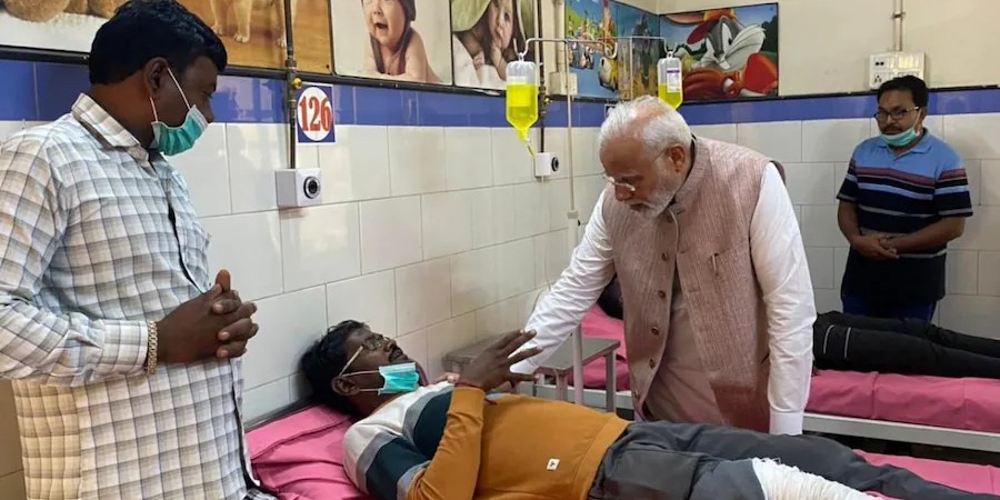 પીએમ મોદી મોરબીમાં સૌપ્રથમ ઘટના સ્થળે પહોંચીને આ સમગ્ર બનાવ કઈ રીતે બન્યો તે જાણ્યું. ગૃહમંત્રી હર્ષ સંઘવી આ ઘટનાનું વર્ણન કરે તે સમયે મોદી આક્રોશ અને ગુસ્સામાં જોવા મળ્યા હતા. કેબલ બ્રિજ બાદ હવે મોદી ઈજાગ્રસ્તોની મુલાકાત કરીને આશ્વાસન આપ્યું કે તમામ સંભવિત મદદ થશે.