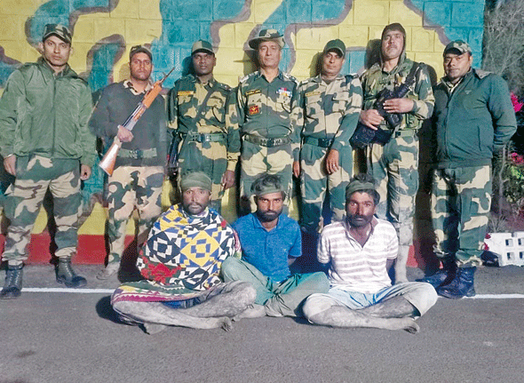 મુશ્કેલ અને પડકારરૃપ ભેજવાળી જમીન તેમજ રાત્રિના કારણે મર્યાદિત દૃશ્યતા હોવા છતાં, ટિમએ તેમનો પીછો કર્યો અને ૩ પાક માછીમારોને પકડી લીધા હતા. રવિ ગાંધી, ઇન્સ્પેક્ટર જનરલ,ગુજરાત ફ્રન્ટિયરની દેખરેખ અને માર્ગદર્શન હેઠળ આ કામગીરી સફળતાપૂર્વક પૂર્ણ કરવામાં આવી હતી. પકડાયેલા માછીમારોમાં અલી અસગર લાલ ખાન ૨૫ વર્ષ ,જાન મોહમ્મદ લાલ ખાન, ૨૭ વર્ષ, બિલાલબલ ખમીસો, ૨૨ વર્ષ જેઓ તમામ પાકિસ્તાનના ઝીરો પોઈન્ટ ગામના રહેવાસી છે.આ ઇસમોને દરિયાકિનારે લવાયા છે જ્યાંથી સ્થાનિક પોલીસને સોંપવામાં આવશે,હજુ સુધી કોઈ શંકાસ્પદ વસ્તુ મળવા પામી નથી.