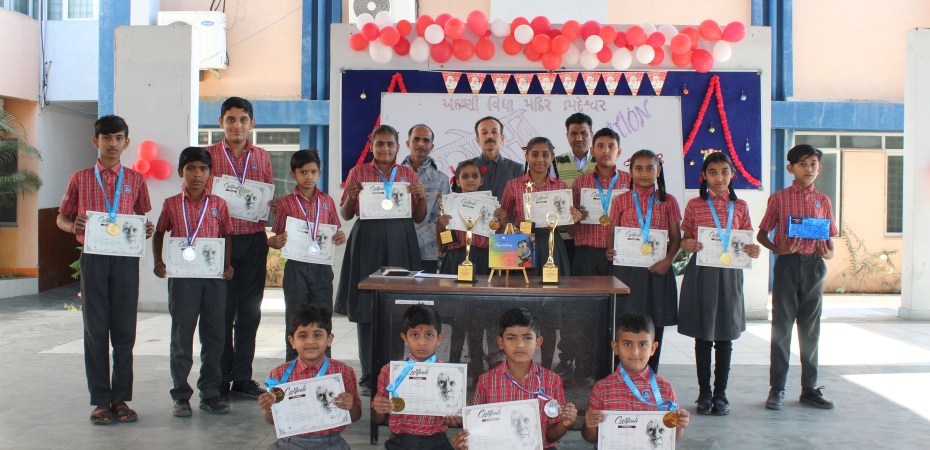 જેમાં ધોરણ-1 થી 8 ના 115 વિદ્યાર્થીઓએ ભાગ લઈને ઉત્કૃષ્ટ દેખાવ કર્યો હતો.ધો. 6 માં ભણતા સરસ્વતીબેન નારણભાઈ મહેશ્વરી અને ધોરણ-9 માં ભણતા જાન્વીબેન સુરજીભાઈ નિંજણ એ પ્રથમ નંબર સાથે ટ્રોફી મેળવી હતી. જયારે મોહમદ તાહિર માંજલીયા એ તૃતીય નંબર સાથે કન્સોલેશન સરપ્રાઈઝ ગીફ્ટ મેળવી હતી. કુલ 10 બાળકોએ ગોલ્ડ મેડલ મેળવીને શાળાને ગૌરવ અપાવ્યું હતું. જયારે 5 બાળકોએ સિલ્વર મેડલ મેળવ્યો. કુલ 97 જેટલા વિદ્યાર્થીઓએ શ્રેષ્ઠ દેખાવ કરી ઇનામને પાત્ર બન્યા હતા.