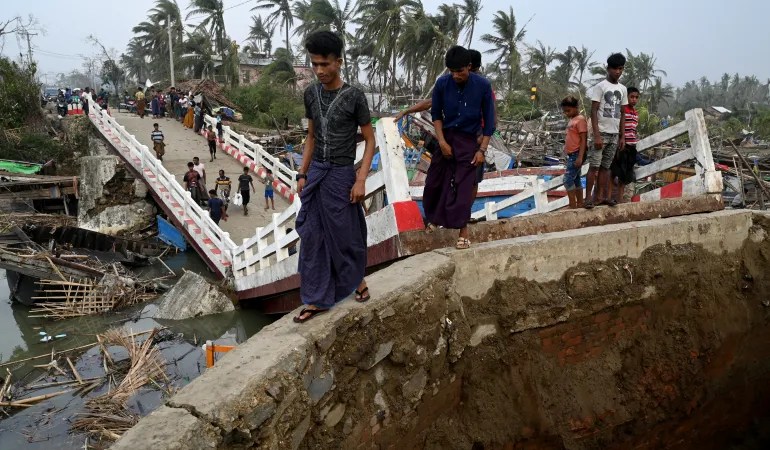 મ્યાનમારમાં આવેલા શક્તિશાળી ચક્રવાતને કારણે અનેક સ્થળોએ તબાહી મચાવી છે. સુત્રોમાંથી મળતી માહિતી મુજબ લઘુમતી વસતી ધરાવતા બુ મા અને નજીકના ગામોમાં ઓછામાં ઓછા 46 લોકોના મોત થયા છે. આ ઉપરાંત રખાઈનની રાજધાની સિત્તવેની ઉત્તરે, રાથેદાઉંગ ટાઉનશીપના એક ગામમાં એક આશ્રમ તૂટી પડતાં તેર લોકોના મોત થયા હતા અને બાજુના ગામમાં એક મકાન ધરાશાયી થતાં એક મહિલાનું મૃત્યુ થયું હતું. સ્થાનિક મીડિયાના જણાવ્યા અનુસાર ચક્રવાત મોચા એક દાયકા કરતાં પણ વધુ સમયગાળામાં આ પ્રદેશમાં ત્રાટકેલું સૌથી શક્તિશાળી ચક્રવાત હતું. આ ચક્રવાતે ગામડાઓને તબાહ કરી નાખ્યા, વૃક્ષો જડમૂળમાંથી ઉખડી ગયા અને રખાઈન રાજ્યના મોટા ભાગના ગામમાં સપંર્ક ખોરવાઈ ગયો હતો.
