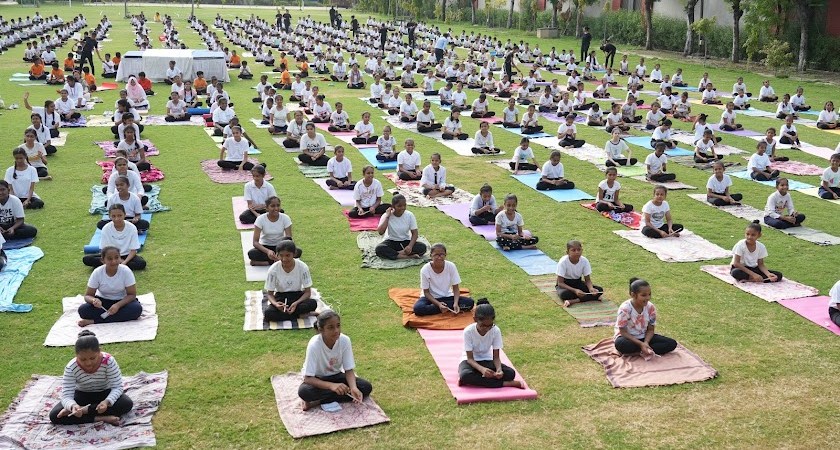 અમદાવાદ સ્થિત અદાણી વિદ્યામંદિર ખાતે આંતરરાષ્ટ્રીય યોગ દિવસની અનોખી ઉજવણી કરવામાં આવી. વિદ્યામંદિરના પટાંગણમાં આયોજીત કાર્યક્રમમાં વિદ્યાર્થીઓ, શિક્ષકગણ સહિત સૌ યોગમય બન્યા હતા. આ વર્ષે ખાસ વૈશ્વિક સસ્ટેનેબલ ડેવલપમેન્ટ ગોલ્સ (SDGs) પર આધારિત ઉજવણી કરવામાં આવી હતી. એટલું જ નહીં, સુર્ય નમસ્કાર પણ પરંપરાગત કરતાં અલગ રીતે કરવામાં આવ્યા. વિદ્યાર્થીઓને પ્લાન્ટેબલ પેન્સિલ તેમજ સફાઈ કામદારોને UV ચશ્માનું વિતરણ કરવામાં આવ્યું હતું.