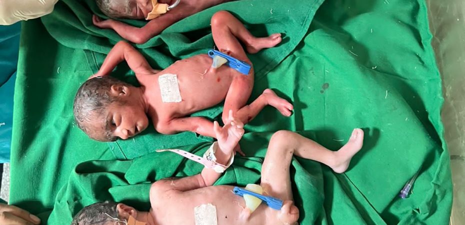 માતા ૧૪ મી ઓગસ્ટના સવારે જી.કે.અદાણી હોસ્પિટલમાં તપાસ કરાવવા આવ્યા, ત્યારે સમય કરતાં વહેલી પ્રસવ પીડા થતાં અને તેમની પરિસ્થિતિને જોતા તાત્કાલિક ઓપરેશન કરી બાળકોને જન્મ આપવાની જરૂરિયાત જણાતા, સામાન્ય પ્રસુતિની રાહ જોયા વિના સિઝેરિયન દ્વારા પ્રસૂતિ કરાઈ હતી. અગાઉ પાંચ ડિલિવરી થઈ ગઈ હોવાથી, કેસ હાઈ- રિસ્ક અને જોખમી હોવાથી તાત્કાલિક અસરથી બાળકો ઉપરથી લેવાયા હતા.