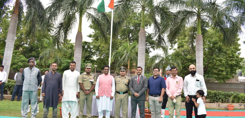 દેશના ૭૭માં સ્વાતંત્ર્યદિન નિમિતે,અદાણી મેડિકલ કોલેજ સ્થિત એનાટોમી ગાર્ડન ખાતે રાષ્ટ્રધ્વજને સલામી આપવામાં આવી હતી. ભુજ બી.એસ.એફ સ્ટેશન હેડ ક્વાર્ટરના કમાંડિંગ મેડિકલ ઓફિસર ડો.આર.કે.પાઠકે ત્રિરંગાને સલામી આપી હતી.આ પ્રસંગે મેડિકલ ડાયરેક્ટર બાલાજી પિલ્લાઇ સહિત તબીબો, જી.કે.અને કોલેજ સ્ટાફ તેમજ વિદ્યાર્થીઓ ઉપસ્થિત રહ્યા હતા.આભારદર્શન સિક્યુરિટી હેડ અભિષેક જાધવે કર્યું હતું.