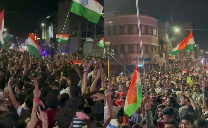 હાલ એશિયા કપની મેચ ચાલી રહી છે. જેમાં ગઈકાલે ભારત-પાકિસ્તાનની મેચ હતી. ત્યારે ભારતે પાકિસ્તાનને કારમી હાર આપતા અડધી રાતે લોકો રોડ પર ઉતરી વિજય ઉત્સવ મનાવવા લાગ્યા હતા. સુરતના ભાગળ વિસ્તારમાં લોકો રાષ્ટ્રધ્વજ સાથે ફટાકડા ફોડી આતશબાજી કરી ભારતની જીતની ભવ્ય ઉજવણી કરી હતી. જેમાં સમગ્ર કોટ વિસ્તાર લોકોની ભીડથી ઉભરાઈ ગયો હતો અને ભારત માતાના જયઘોષથી સમગ્ર વિસ્તાર ગુંજી ઉઠ્યો હતો. ડીજેના તાલે લોકો ઝુમી ઊઠ્યા હતા.