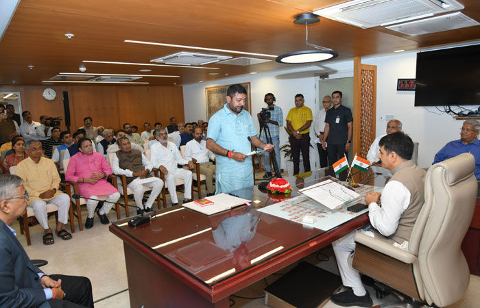 ગુજરાત વિધાનસભાની પાંચ બેઠકની પેટા ચૂંટણીમાં તમામ બેઠક પર ભાજપની જીત થઈ છે. ત્યારે આજે (11મી જૂન) ગુજરાત વિધાનસભા અધ્યક્ષની હાજરીમાં વિજાપુરથી સી. જે. ચાવડા, પોરબંદરથી અર્જુન મોઢવાડિયા, ખંભાતથી ચિરાગ પટેલ, માણાવદરથી અરવિંદ લાડાણી અને વાઘોડિયાથી ધર્મેન્દ્રસિંહે ધારાસભ્ય પદના શપથ લીધા હતા. આ દરમિયાન મુખ્યમંત્રી ભૂપેન્દ્ર પટેલ, સંસદીય બાબતોના મંત્રી ઋષિકેશ પટેલ સહિત અનેક નેતાઓ ઉપસ્થિત રહ્યાં હતા.