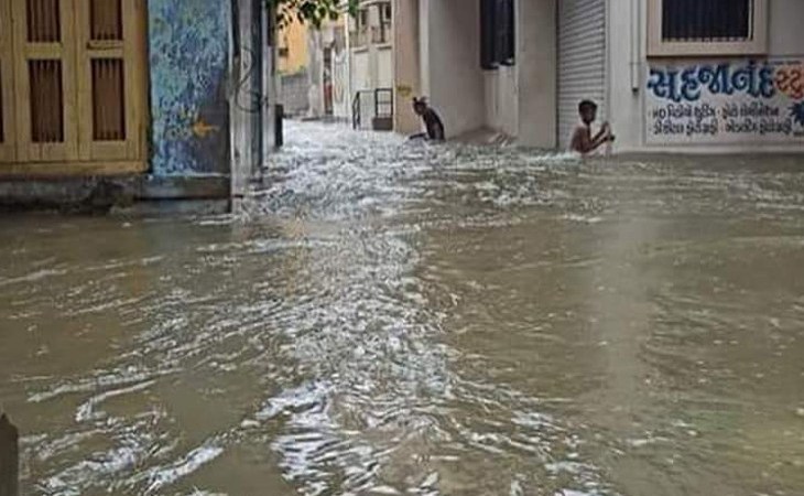 સરહદી કચ્છ જિલ્લામાં મધરાતથી આજ સવાર સુધીમાં મેઘરાજાએ સાર્વત્રિક વરસીને અસલ અષાઢી માહોલની જમાવટ કરી છે. ખાસ કરીને સવારે વરેસલા વરસાદથી નખત્રાણામાં (70 મિમી) 3 ઇંચ કેટલો વરસાદ પડી જતા જળ બંબાકારની સ્થિતિ નિર્માણ પામી છે. નગરની બજારોમાં ફરી નદીની માફક ધોધ વહી નીકળતા વેપારીઓ, રાહદારીઓ મુશ્કેલીમાં મુકાયા હતા. તો બીજી તરફ ભારે જળ પ્રવાહના વહેણથી ફરી એક વખત ભુજ લખપત ધોરીમાર્ગ પરના વાહન વ્યવહારને અસર પહોંચી હતી,જ્યારે મથલ પાપડી બે કાંઠે વહેતા બન્ને તરફ ભારે ટ્રાફિકજામની સ્થિતિ નિર્માણ પામી છે. આ સિવાય માંડવી અને અબડાસા તાલુકામાં પણ વ્યાપક પ્રમાણમાં મેઘ વર્ષા થઈ છે. અબડાસાનો કંકાવટી ડેમ અને માંડવી શહેરનું ઐતિહાસિક ટોપણ સર તળાવ ઓવરફલો થઈ ગયું છે.ભુજમાં પણ પરોઢે જોરદાર વરસાદ ખાબકી પડતા જોશભેર પાણી વહી નીકળ્યા હતા. અમદાજીત એકાદ ઇંચ પાણી પડી ગયું હતું.