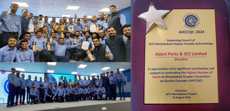 અમદાવાદ ચેપ્ટર કન્વેન્શન ઓન ક્વોલિટી કોન્સેપ્ટ્સ 2024 (AHCCQC 2024)માં મુંદ્રા પોર્ટે મેદાન માર્યુ છે. મુંદ્રા પોર્ટેની ટીમ 13 ગોલ્ડ અને 2 સિલ્વર ટ્રોફી મેળવી અવ્વલ રહી છે. ગર્વની બાબત એ પણ છે કે APSEZ મુન્દ્રાને “સૌથી વધુ ભાગીદારી” અને “જ્યુરી મેમ્બર” તરીકેના યોગદાન માટે વ્યક્તિગત પુરસ્કારો પણ મળ્યા છે.