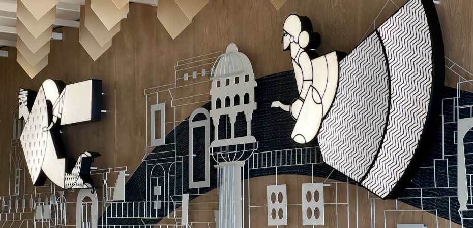 SVPI એરપોર્ટના T-2 એરાઇવલ્સ ખાતે એક નવા આકર્ષક આર્ટ ઇન્સ્ટોલેશનનું અનાવરણ કરવામાં આવ્યું છે. મુસાફરોને શહેરની વાઇબ્રન્ટ એનર્જીનો અનુભવ કરાવવા તે ડિઝાઇન કરવામાં આવ્યું છે. હલચલ વોલ ધાતુની એક અદભૂત શિલ્પ છે જેમાં ભારતની પ્રથમ વર્લ્ડ હેરિટેજ સિટી અમદાવાદના સ્થાપત્યની સુંદરતા અને રોજિંદા જીવનનું નિરૂપણ કરવામાં આવ્યું છે..