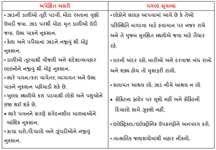 26 મેના રોજ સૌરાષ્ટ્ર અને દક્ષિણ ગુજરાતના 10 જિલ્લામાં ભારે વરસાદની આગાહી છે. જેમાં ગીર સોમનાથ, અમરેલી, ભાવનગર, ભરૂચ, નર્મદા, સુરત, તાપી, ડાંગ, નવસારી, વલસાડ જિલ્લામાં યલો ઍલર્ટ જાહેર કરાયું છે. જ્યારે 27 મેના રોજ તાપી, ડાંગ, નવસારી, વલસાડ, ભાવનગર, અમરેલી, ગીર સોમનાથ જિલ્લામાં ભારે વરસાદને પગલે હવામાન વિભાગે યલો ઍલર્ટ જાહેર કર્યું છે.