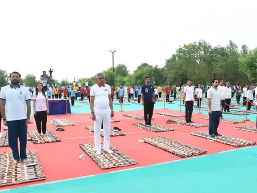 આજ રોજ સવારે 6 વાગ્યાથી “આહિર બોર્ડિંગ” અંજાર મધ્યે નાયબ કલેકટર કચેરી, મામલતદાર કચેરી અને અંજાર નગરપાલિકાના સંયુક્ત ઉપક્રમે પતંજલી યોગ સમિતિ અને કચ્છ આહિર બોર્ડિંગના સહયોગથી આયોજન કરવામાં આવ્યુ હતું. ત્યારબાદ ગુજરાત રાજ્ય યોગ બોર્ડના કોચ ગીતુ કટારીયા, સીમા ઠક્કર અને યોગ શિક્ષક શિવાંગી કાતરીયા દ્વારા ઉપસ્થિત સૌને યોગ તથા આસન કરાવ્યા હતા. છેલ્લે રાષ્ટ્રગીત રજૂ કરવામાં આવ્યું હતું. કાર્યક્રમનું સંચાલન અને આભાર વિધિ કચ્છ પતંજલી યોગ સમિતિના પ્રમુખ દિનેશભાઈ સી. ઠક્કરે કર્યા હતા.જેમાં ધારાસભ્ય ત્રિકમભાઈ છાંગા ,નગરપાલિકાના પ્રમુખ વૈભવભાઈ ડી. કોડરાણી, નાયબ કલેકટર સુરેશભાઈ ચૌધરી, હેલ્થ ઓફિસર ડો. રાજીવભાઈ અંજારિયા, યોગીક ક્રિયામાં જોડાયા હતા. ચીફ ઓફિસર પારસકુમાર મકવાણા અને કચેરી અધિક્ષક ખીમજી પાલુભાઈ સિંધવના માર્ગદર્શન હેઠળ નરશીભાઈ દાવા, રશ્મિન ભીંડે, જીતેન્દ્રભાઈ જોશી, પ્રકાશભાઈ રોશિયા, દેવેન કનકચંદ્ર વ્યાસ, જીગ્નેશભાઈ ગૌસ્વામી, ધવલભાઇ થરાદરા, મયુર હેરમાં, સાવન પંડ્યા, ગુંજન પંડયા, કિશનભાઇ પ્રજાપતિ, ખેરાજભાઈ મહેશ્વરી, વગેરેએ કાર્યક્રમને સફળ બનાવવા જહેમત ઉઠાવી હતી.