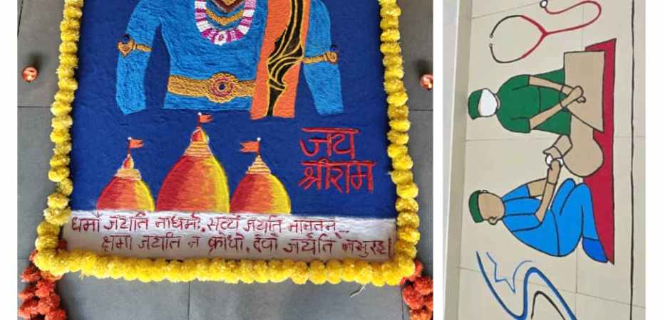 ભારતમાં રંગોળી બનાવવાની પરંપરા સદીઓ જૂની છે, જેનાથી સદભાવના વાતાવરણમાં પ્રસરે છે. એ જ તર્જ ઉપર અદાણી સંચાલિત GAIMS જી. કે. જનરલ હોસ્પિટલના પ્રત્યેક ઓપીડી અને વિભાગના વર્ક સ્ટેશન પાસે તથા અદાણી મેડિકલ કોલેજમાં રંગોળી રચી સર્વે સંતુ નિરમયાની કામના કરાઈ હતી.કુલ ૨૯ રંગોળી બનાવવામાં આવી હતી. આમ રંગોળી ધાર્મિક,વૈજ્ઞાનિક,સાંસ્કૃતિક અને સુંદરતાનું પ્રતીક છે. એવું પણ માનવામાં આવે છે કે, ભગવાન શ્રી રામ, માતા સીતા અને લક્ષ્મણ સાથે જ્યારે ૧૪ વર્ષના વનવાસ બાદ અયોધ્યા આવ્યા ત્યારે નગરજનોએ તેમના ઉમળકાભેર સ્વાગત માટે રંગોળી બનાવી દીવડા પ્રગટાવ્યા હતા.પુરાતત્વ વિભાગના અહેવાલ મુજબ મોહેંજોદડો અને હડપ્પા સંસ્કૃતિમાં પણ રંગોળીના પ્રતીકો મળી આવ્યા છે.