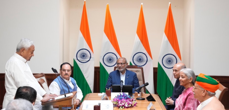 બિહારના વરિષ્ઠ નેતા અને મુખ્યમંત્રી નીતિશ કુમારે આજે રાજ્યસભાના સભ્ય તરીકે શપથ લઈને પોતાની નવી સંસદીય ઇનિંગની શરૂઆત કરી છે. સંસદ ભવનમાં રાજ્યસભાના સભાપતિ સી.પી. રાધાકૃષ્ણને તેમને શપથ લેવડાવ્યા હતા. શપથ વિધિ પહેલા નીતીશ કુમારે જે.પી. નડ્ડા સાથે મુલાકાત કરી હતી.