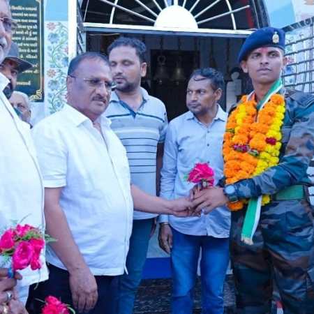 નમ્રતાગ્રીન ફાઉન્ડેશનના ગિર સોમનાથ જિલ્લા પ્રમુખ પ્રવીણભાઈ મકવાણા તેમજ વાસોજ ગામના યુવાનો દ્વારા આર્મીમેન ચીરાગભાઈ કામળીયા નું ફૂલ હારથી ભવ્ય સ્વાગત કરવામાં આવ્યું