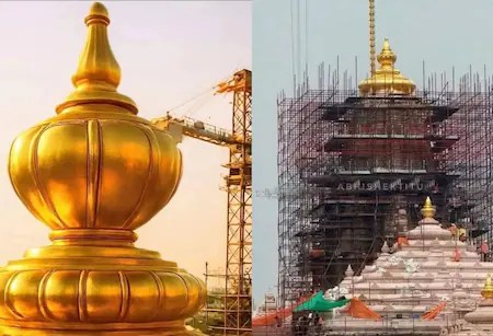 અયોધ્યામાં રામલલ્લા મંદિરના શિખર પર સોનાથી જડેલા કળશને સ્થાપિત કરવામાં આવ્યો